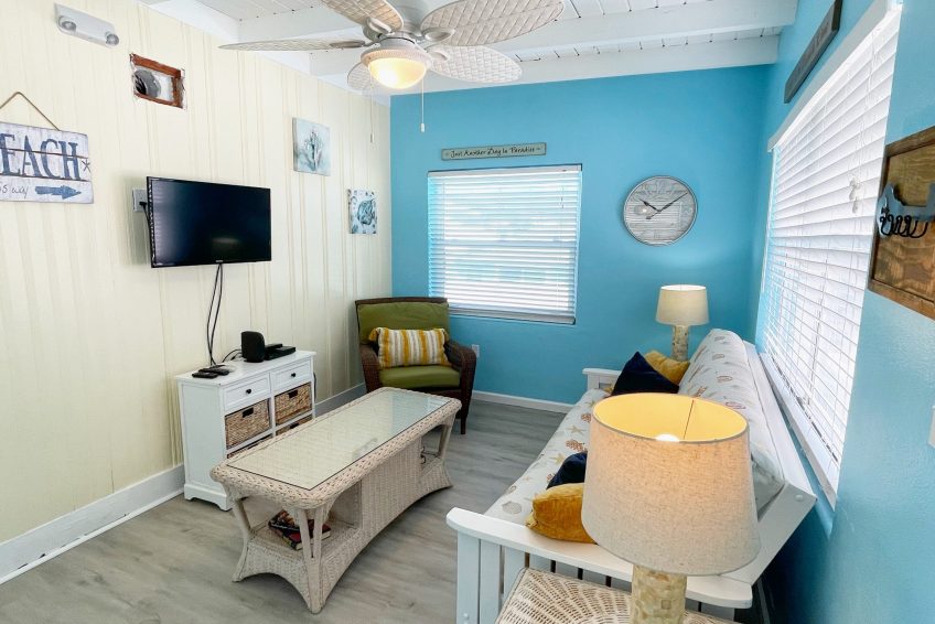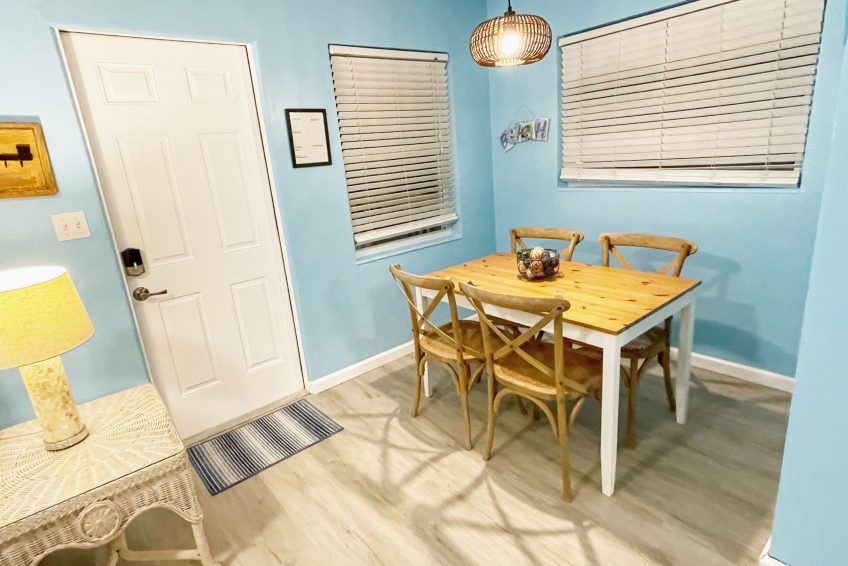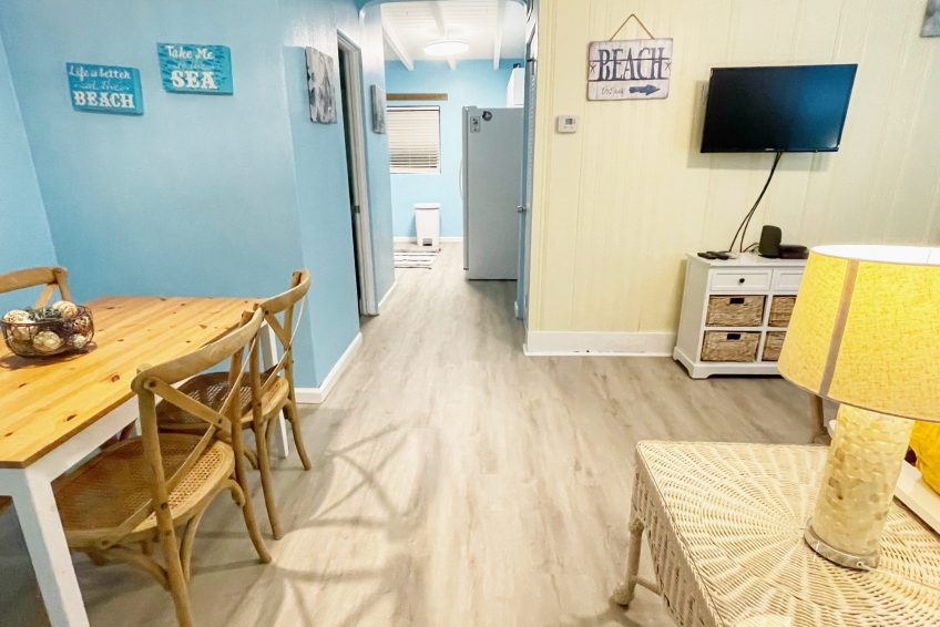 Complete renovation in October 2022 with a new bathroom! A coastal beach cottage on the second floor in a quaint 3-unit property in Cape Canaveral just over a block from the beach! The property has a pool just for use by the cottages on the property, an outdoor grill, a recreation area, and a common area room with laundry supplies!